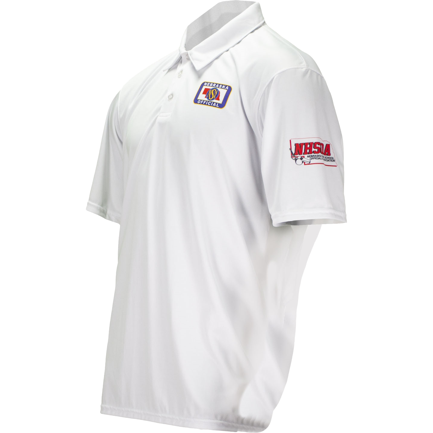 Cliff Keen has developed an EXCLUSIVE Custom Sublimated polo style shirt for volleyball officials in Nebraska. Featuring an optic white base color, your NHSOA logo is actually dyed directly in the fabric, on the left sleeve, and the NSAA logo is seamlessly dyed into the shirt on the left chest. Take the court in comfort and style!